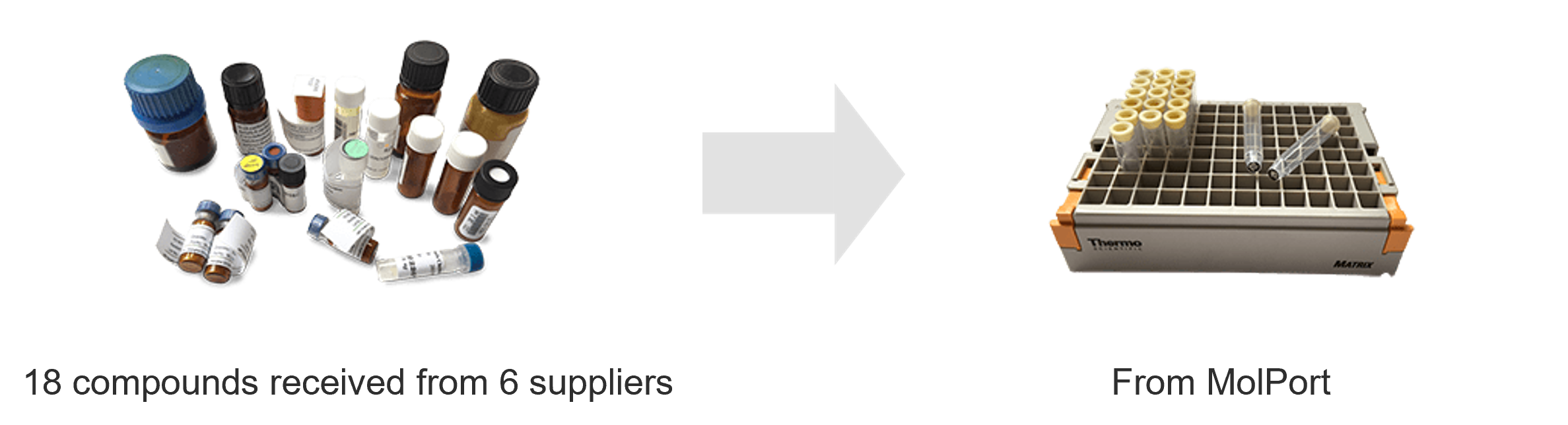 - Your Vials– you can ship your own vials to MolPort, and we will use them for reweighing or reformatting; or we can request that suppliers do this for you.